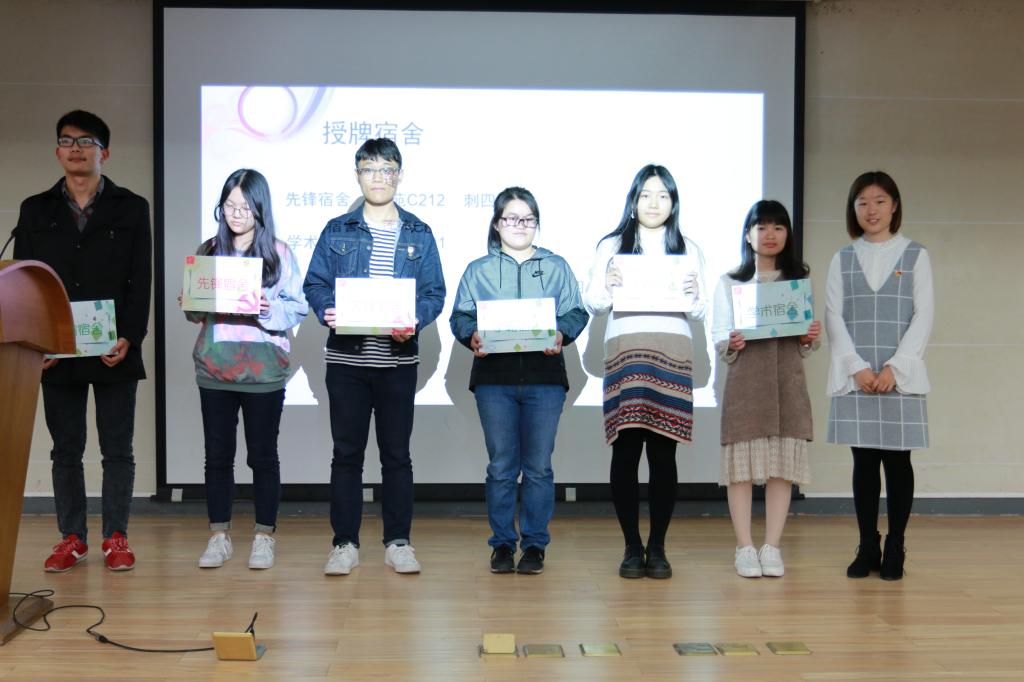 会议的第二个流程进行了化工学院文明宿舍的挂牌仪式,徐慧老师向文明宿舍代表进行授牌。此次共评选出10间文明宿舍,分别授予先锋宿舍,学霸宿舍,学术宿舍,整洁宿舍,活力宿舍,魅力宿舍荣誉称号并进行挂牌。要求这10间宿舍在接下来的一个学期内,遵守学院的各项规章制度,充分发挥模范带头作用,带动周围宿舍共同创建文明社区。在挂牌期内若出现违规违纪,将取消荣誉称号。